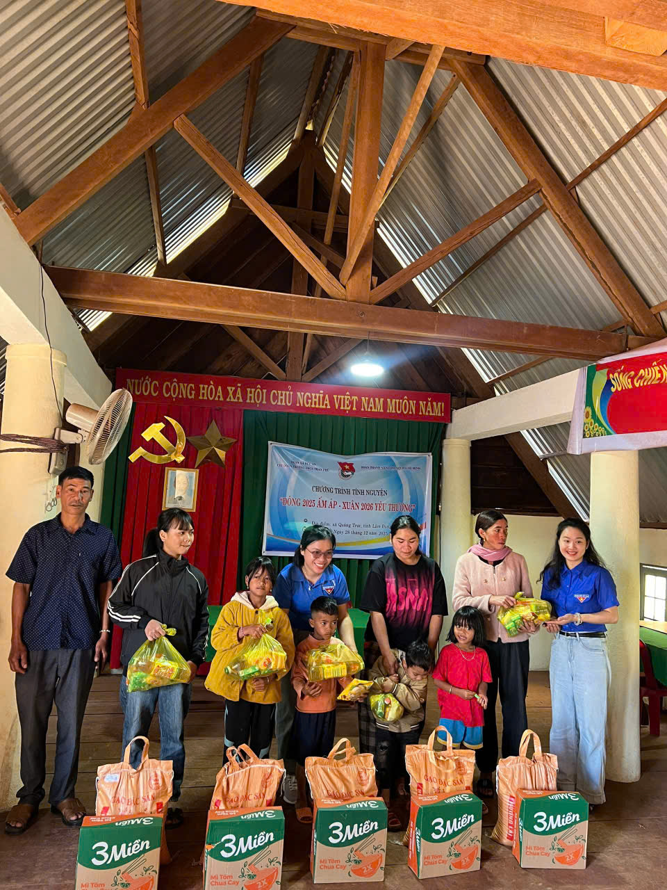MÙA ĐÔNG 2025 ẤM – XUÂN BIÊN CƯƠNG YÊU THƯƠNG Ngày 28/12/2025, Thực hiện KH số 02/KH-ĐTN, được sự cho phép của Chi bộ, Chi Đoàn và Đội TNTP Hồ Chí Minh trường THCS Trần Phú (xã Đức An, tỉnh Lâm Đồng) thực hiện chuyến thăm quan thực tế và trao tặng quà cho các em nhỏ có hoàn cảnh khó khăn tại Bon Bu Sop, xã Quảng Trực, tỉnh Lâm Đồng. Các phần quà bao gồm nhu yếu phẩm (như gạo, sữa, bánh kẹo, dầu ăn, mắm, muối, hạt nêm…) và quần áo ấm. Những phần quà tuy nhỏ nhưng như những ngọn nến thắp sáng và ấm giúp xua đi phần nào cái giá lạnh nơi biên cương Tổ Quốc. Những nụ cười hồn nhiên của các bạn nhỏ, ánh mắt rạng ngời khi nhận những phần quà khiến những đoàn viên thấy thật hạnh phúc. Sau chuyến đi, điều đọng lại nơi các thành viên là sự xúc động, biết ơn và trưởng thành hơn, thấy cuộc sống ý nghĩa hơn khi mang lại niềm vui, hy vọng cho người khác, đồng thời nhận thức sâu sắc hơn về những khó khăn xung quanh để biết trân trọng và yêu thương nhiều hơn, tạo động lực để tiếp tục cống hiến và lan tỏa tình nhân ái. TUỔI TRẺ TIÊN PHONG – ĐOÀN KẾT – BẢN LĨNH – ĐỘT PHÁ- PHÁT TRIỂN